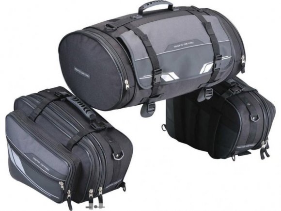 - Volumen por alforja : 12 litros - por Rundumreißverschluß ampliable a 20 litros